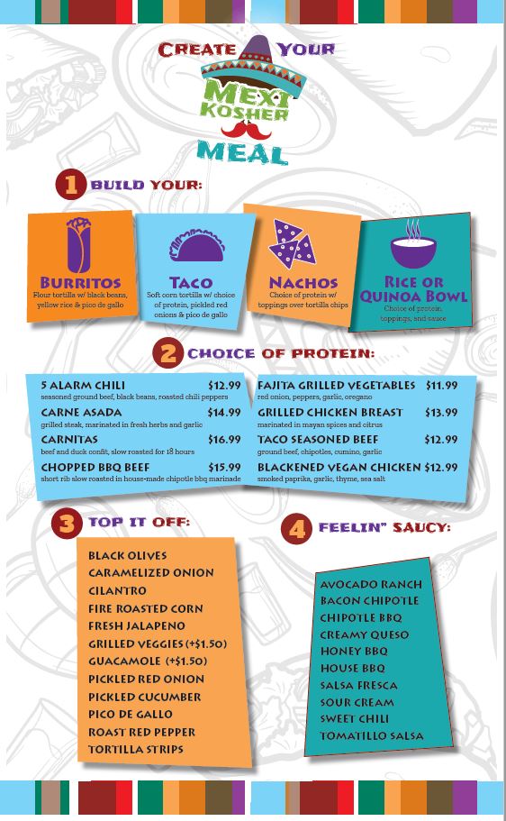 Nestled in the heart of New York at 100 W 83rd St, Mexikosher is a remarkable dining experience that redefines kosher cuisine. This vibrant eatery showcases a menu where you can custom-build your meal, choosing from mouthwatering options like tacos, burritos, and nachos. Each dish allows you to select your favorite protein, toppings, and sauces, delivering a personalized flavor experience.